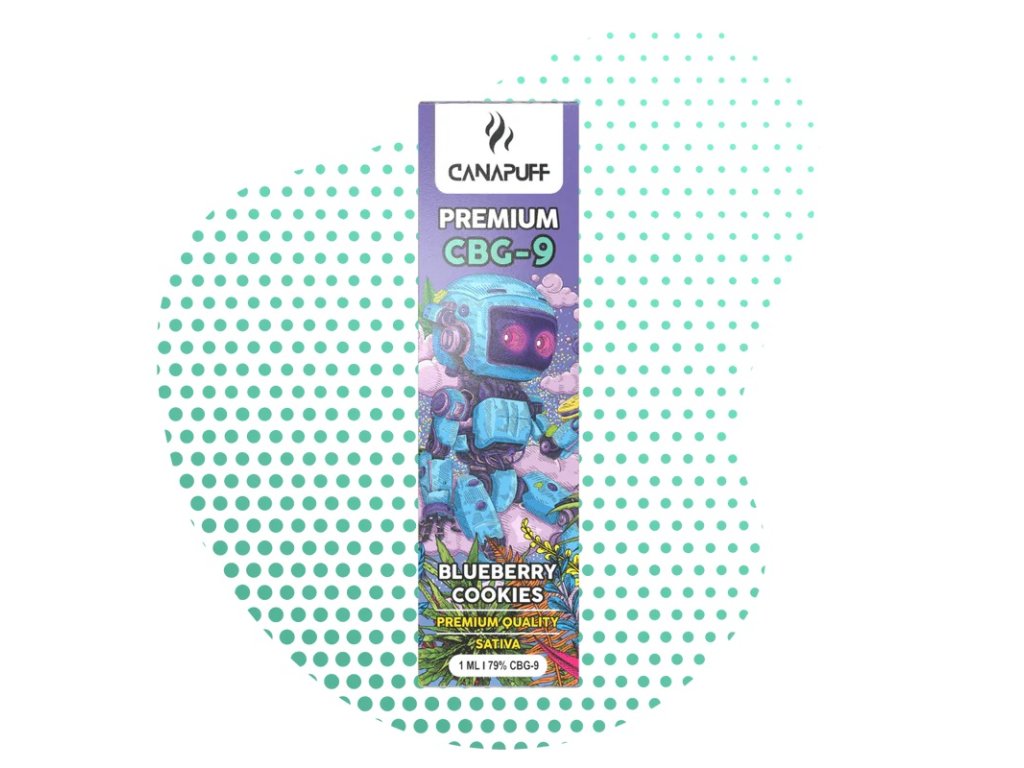 Blueberry Cookie 79% CBG9 – Jednorázovka 1ml od CanaPuff je inovativní produkt pro všechny, kteří hledají pohodlný a efektivní způsob, jak využít přínosů nového kanabinoidu CBG9. Tento kanabinoid má jedinečné chemické složení, které ho odlišuje od běžných kanabinoidů, a jeho účinky jsou podobné HHC, což může přinést euforii, uvolnění a celkovou pohodu.