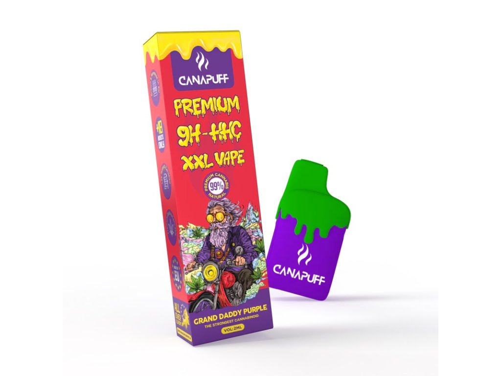 Grand Daddy Purple 99% 9H-HHC XXL Vape 2 ml od značky Canapuff je prémiová jednorázová elektronická cigareta, která kombinuje extra silný 9H-HHC destilát s legendárním aromatickým profilem Grand Daddy Purple. Moderní kanabinoid 9H-HHC je navržen s důrazem na intenzitu, stabilitu a konzistentní kvalitu, díky čemuž osloví především zkušenější uživatele hledající výraznější zážitek než u běžných alternativ.