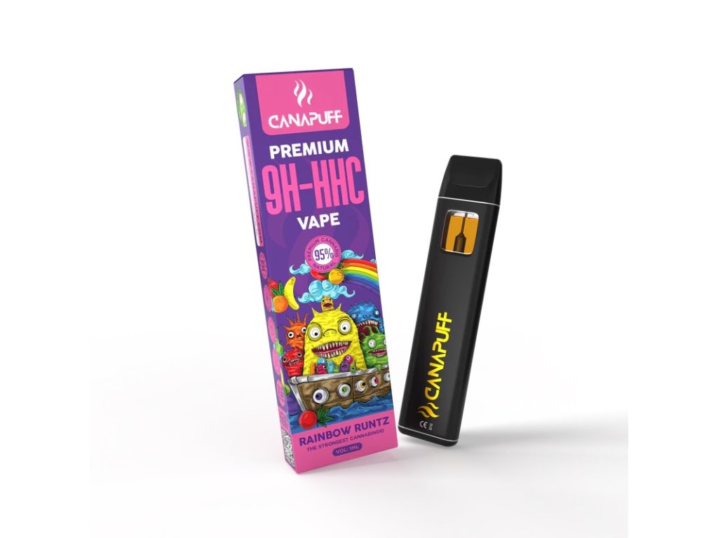 Canapuff, specialista na prémiové konopné produkty – vapy, květy, hashe i gummies – zajišťuje kvalitu, konzistentní výkon a sofistikovaný design, a Rainbow Runtz 95% 9H‑HHC tak skvěle doplňuje řadu prémiových psychoaktivních vape produktů pro náročné uživatele.